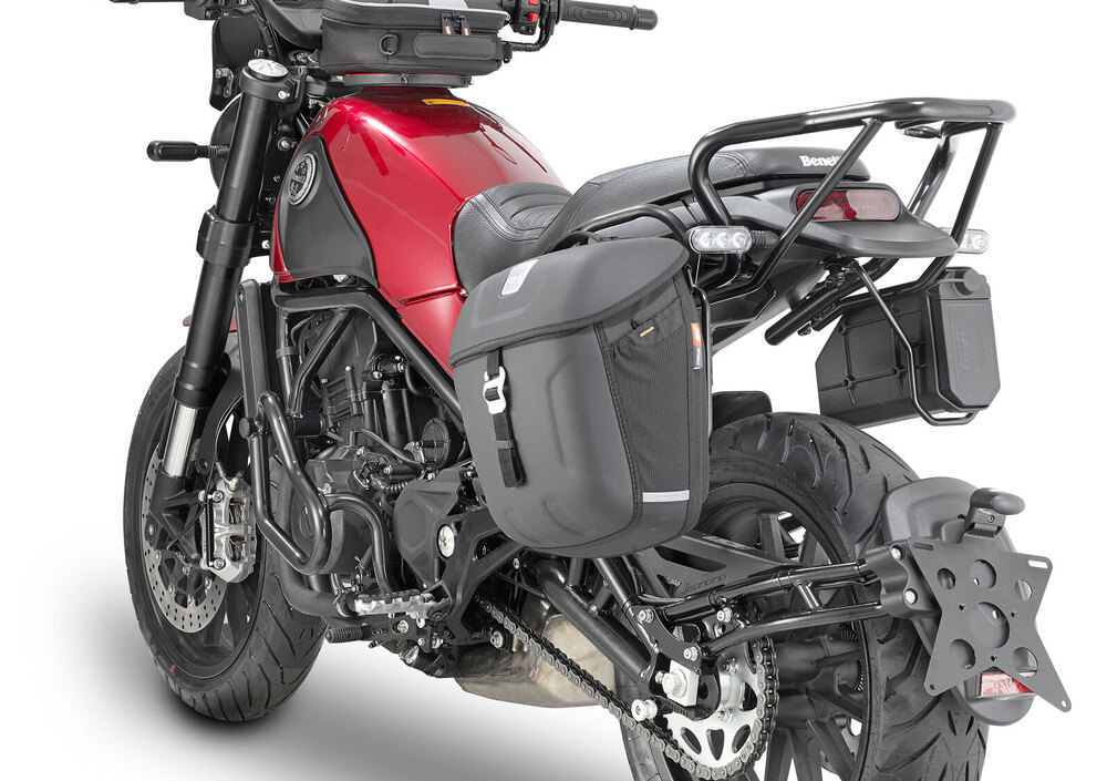 Il progetto e il design (realizzati nel centro stile italiano del marchio di Pesaro) si sposa con la gamma accessori di GIVI - a partire dalle borse laterali termoformate - che permette di soddisfare i bisogni del motociclista metropolitano e delle esplorazioni, anche in coppia, durante il weekend, lasciando aperta la porta a complementi ulteriori, sempre firmati GIVI, come l’aggiunta di un borsone waterproof della linea EASY da fissare sulla sella posteriore,o il portapacchi, o magari un compatto top case come il DLM30B Trekker Dolomiti, in versione Black Line.