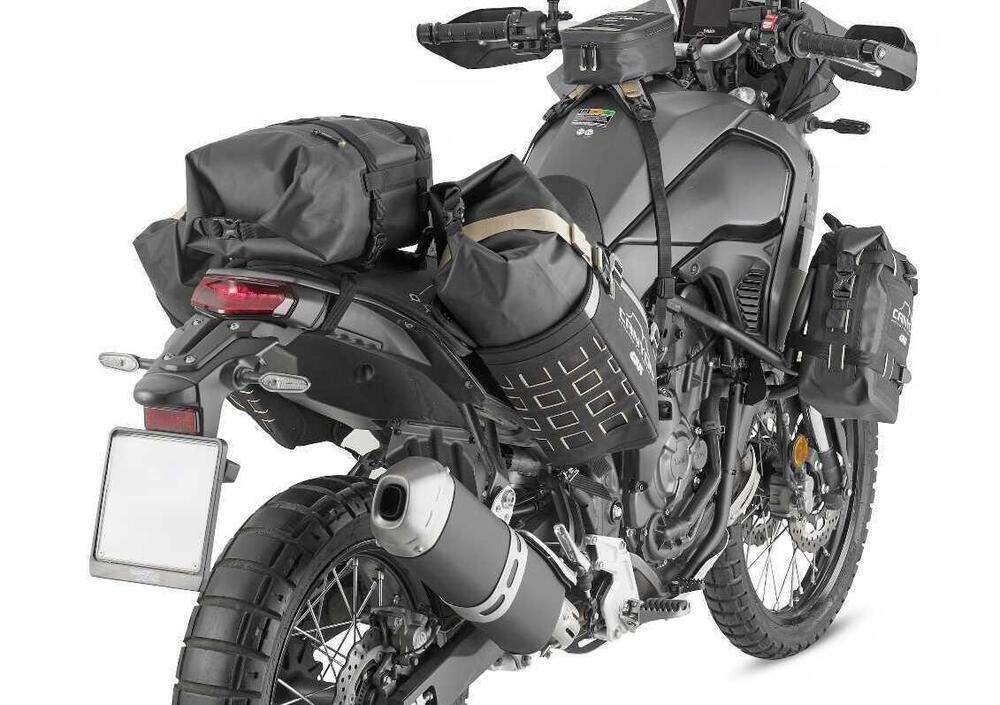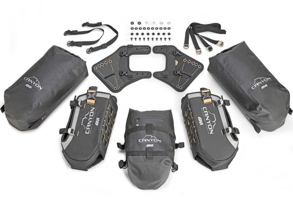 E’ il rinnovato sistema di carico bagagli modulare a ferro di cavallo; non necessita di alcun tipo di telaio per essere montato e permette diverse configurazioni per vestire al meglio la moto. Segue i dettami tecnici della linea Canyon 2025 introducendo una sostanziale differenza con il modello che andrà a sostituire: non è costituito soltanto dalla base portaborse da fissare alla moto ma è un vero e proprio set di cui fanno parte anche tre borse dedicate: una coppia di laterali da 16 litri, una posteriore da 12 litri.