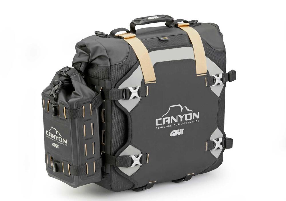 Presenti sul mercato dal marzo 2021, e ulteriormente arricchite nel 2022 arrivando a toccare 13 differenti proposte, le borse Canyon rispondono alle esigenze di carico bagagli del segmento off-road. Anche in condizioni estreme garantiscono massima impermeabilità, alta resistenza ai raggi UV e a impatti e abrasioni.