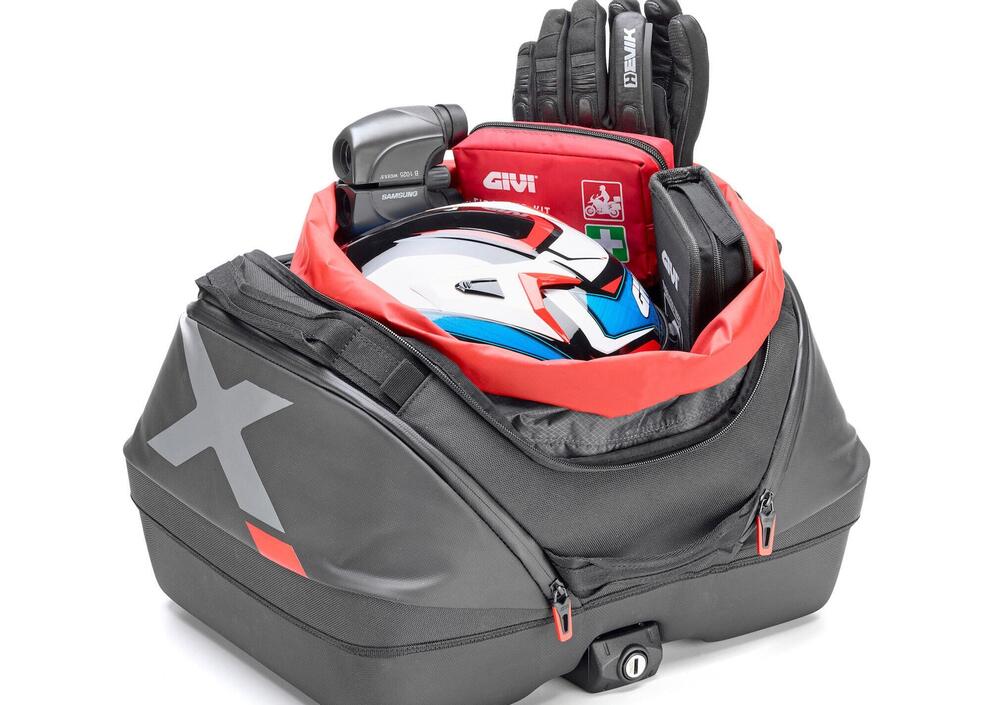 Vero e proprio topcase morbido, con la sua linea aerodinamica l’XL08 fa bella figura su ogni moto o scooterone e rappresenta una soluzione di carico posteriore che lascia libera la sella passeggero: la sua base semirigida ha permesso di renderlo compatibile con il sistema di attacco MONOKEY, quello che da decenni GIVI utilizza sulle valigie laterali e bauletti rigidi.