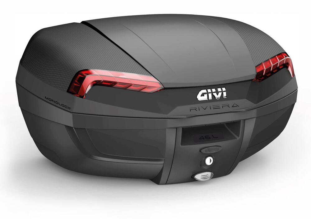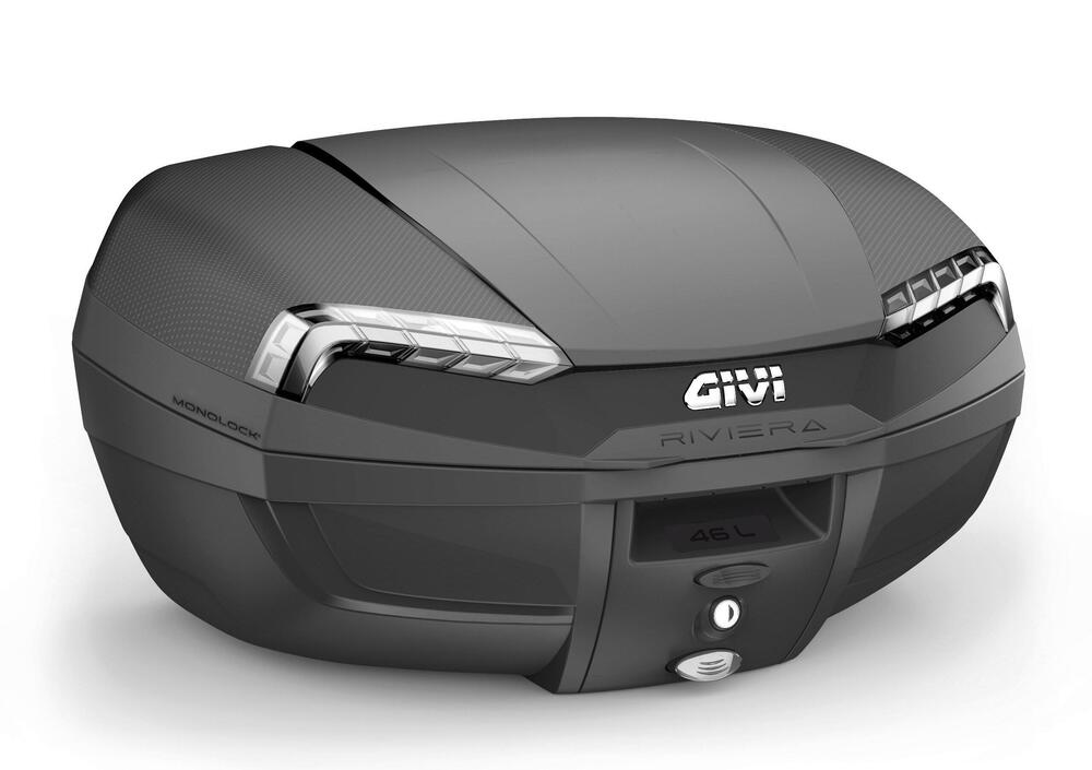 Il RIVIERA offre di serie un tappetino morbido removibile, fissato con velcro al fondo, e può contenere due caschi, anche modulari (di dimensioni medie, come il GIVI X.21).