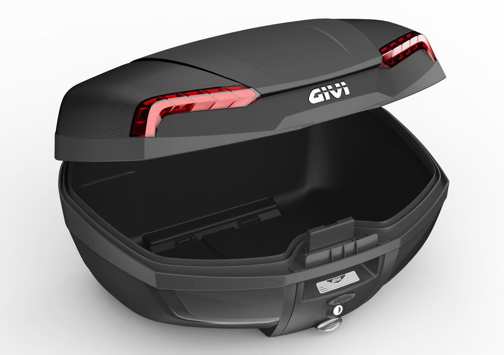 Le nuove cerniere di rotazione del coperchio ottimizzano anche l’ergonomia, il comfort in viaggio e il posizionamento sulla moto/scooter: in generale si è ottenuto più spazio comodo per la schiena del passeggero.