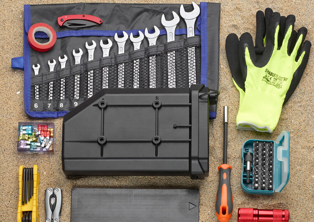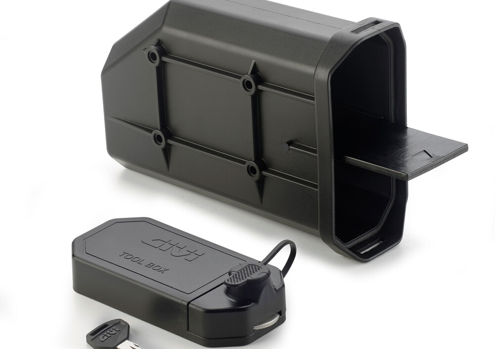 La cassetta porta attrezzi Tool box si abbina ai portavaligie laterali GIVI PL, PLR, PL…CAM, PLR…CAM tramite il kit di attacco TL (specifico per modello di moto) oppure attraverso il kit di attacco S250KIT. Questa seconda possibilità va presa in considerazione nel caso non sia disponibile un attacco TL per la moto posseduta; GIVI consiglia di verificarne la possibilità di montaggio e di controllare che nulla interferisca con la Tool box lungo tutto l’arco di escursione del forcellone posteriore.
