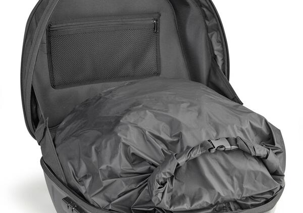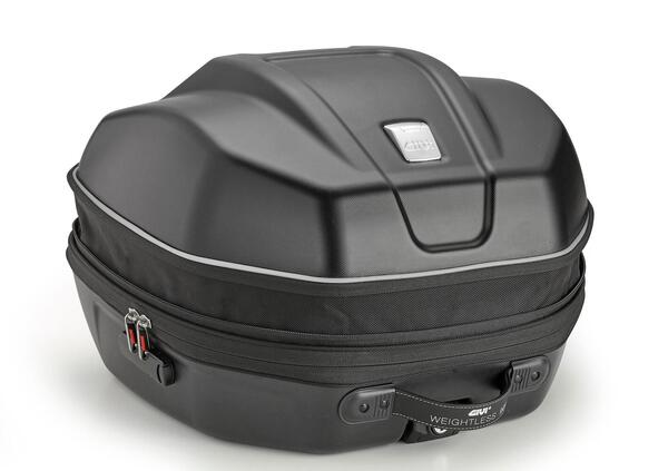 La particolarità di questo top-case sta nella sua capacità di aumentare il volume interno da 29 a 34 litri, sufficienti a contenere comodamente un casco modulare. Questa caratteristica è consentita dall’apertura della cerniera a fisarmonica, che cela un’estensione in tessuto poliestere 600D. Compatibile con tutte le piastre Monokey, il WL901 si fissa e chiude con la stessa modalità già descritta per le laterali. Non manca la maniglia per il trasporto.