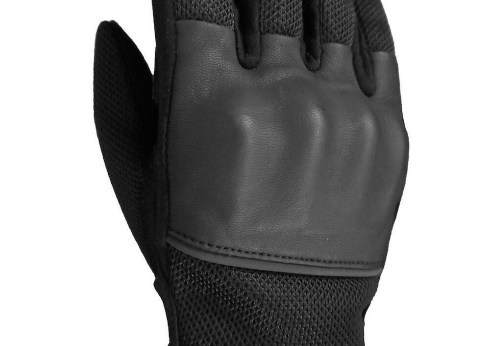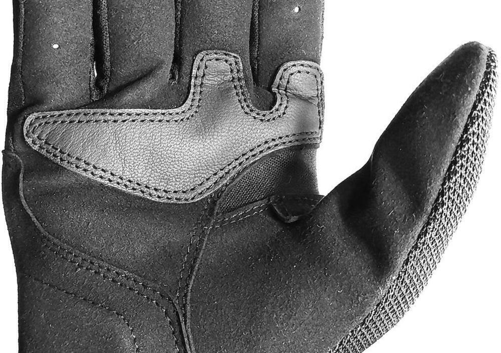 In particolare, un inserto in pelle morbida e flessibile irrobustisce parte del palmo e un altro - più ampio, liscio e compatto - protegge invece le nocche.