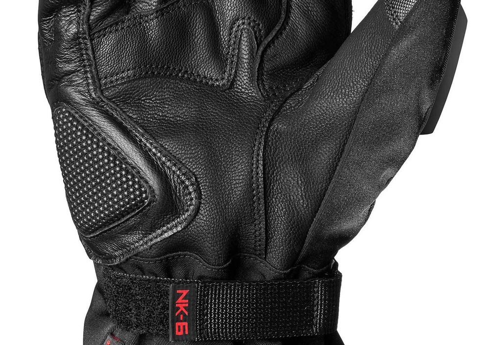 Per quanto riguarda la sicurezza, i guanti NK-6 hanno protezioni rigide sulle nocche e sul dorso, con imbottiture aggiuntive sul dorso delle dita. Un lamella tergivisiera in gomma è montata sul pollice, così da rimuovere velocemente pioggia, neve e fango, senza dover interrompere la guida.