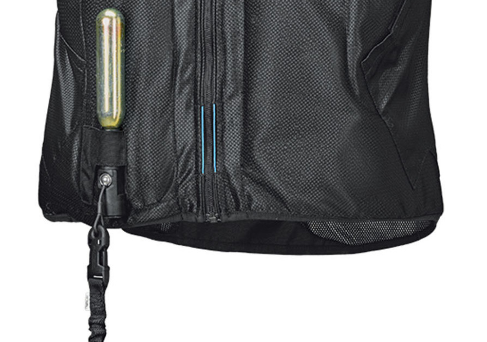 Il prodotto che potrà essere testato sarà in questo caso il gilet, da indossare sotto qualsiasi giacca, dotato di cinghia meccanica: un air-bag, certificato con attuale norma DIN, che si apre completamente entro 0,1 secondi e che è dotato di una tasca per protettore pettorale per l'eventuale inserimento dell'articolo opzionale (9316)