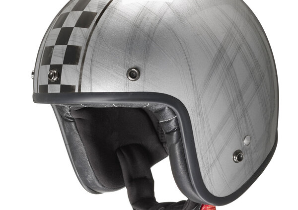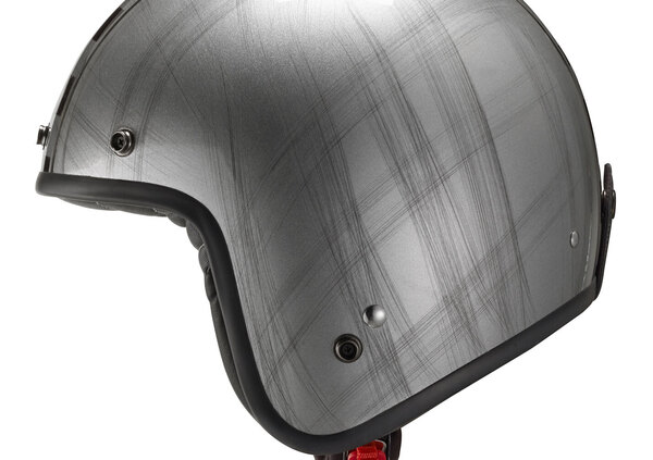Elemento vincente appare anche la colorazione della calotta, molto originale dal punto di vista dell’impatto visivo grazie alla scelta di un pattern che riproduce la finitura dei serbatoi lasciati grezzi con effetto alluminio spazzolato.