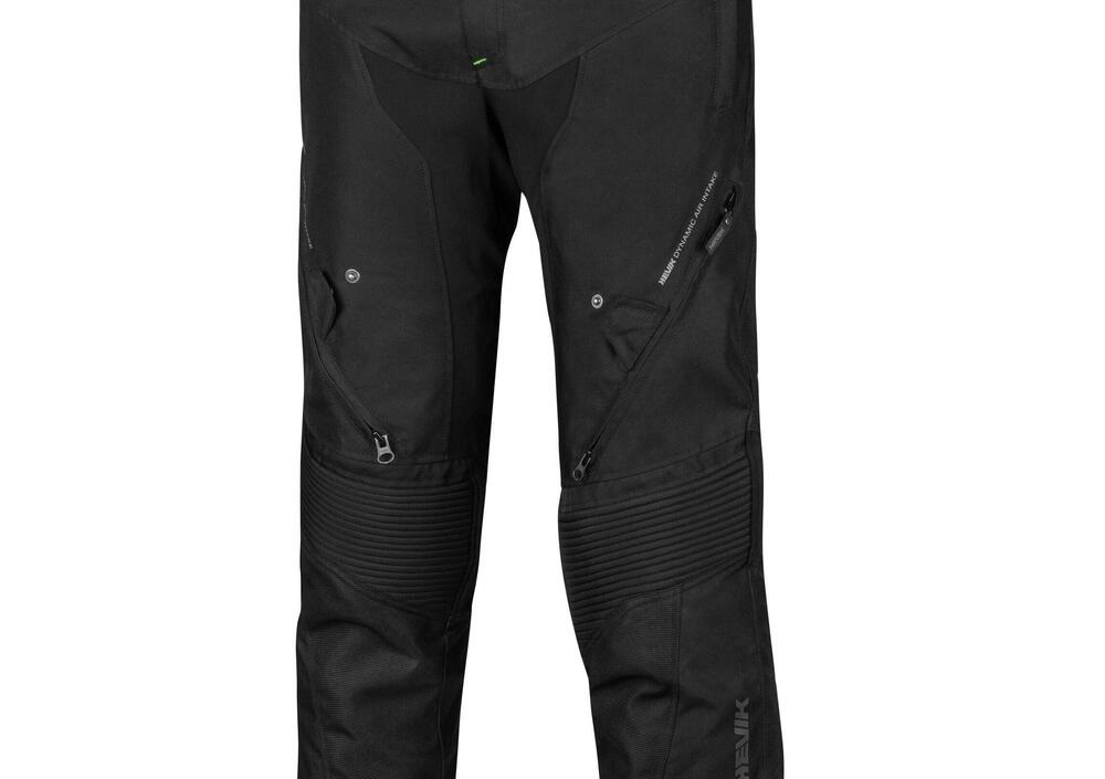 Il pantalone CENTAURUS mantiene lo stesso livello di tecnicità della giacca (3 strati indipendenti), nonché lo stesso stile a livello estetico. Il comparto sicurezza vede la presenza di protezioni certificate di serie sulle ginocchia e sui fianchi. Anche il pantalone vanta un sistema di ventilazione, composto di 2 prese d’aria posizionate sull’esterno gamba. Quattro le tasche previste, di cui 2 ad altezza fianchi e 2 poco al di sopra del ginocchio. Da citare sono anche le regolazioni a strap presenti sui fianchi e la predisposizione per l’aggancio alla giacca. Due le proposte colore disponibili.