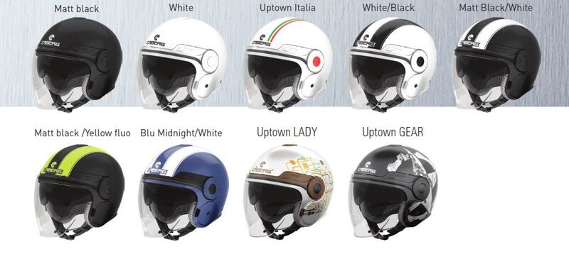 E' realizzato con doppia calotta esterna in policarbonato, ha due prese d’aria frontali oltre ai due fori posteriori per garantire un’ottima ventilazione anche nei mesi più caldi. Il sistema Double Visor Tech di Caberg permette di guidare sempre con la luce ideale e quindi in piena sicurezza grazie ad una visiera parasole interna facilmente manovrabile. La visiera esterna trasparente è trattata antigraffio e predisposta per la lente antifog Pinlock. La fibbia a regolazione micrometrica permette una sicura ma facile regolazione, inoltre Uptown è dotato di anello per assicurare il casco alla motocicletta o allo scooter. Gli interni, completamente estraibili e lavabili, sono studiati con tessuti ad alta traspirazione. Uptown è predisposto per accogliere il sistema di comunicazione wireless Caberg just Speak S che, grazie alla tecnologia Bluetooth, permette di comunicare non solo con il proprio telefono cellulare e con il passeggero ma anche di collegarsi ad un navigatore satellitare ed ascoltare musica attraverso un lettore mp3 o attraverso il cellulare. Il prezzo è di 139,99 Euro.