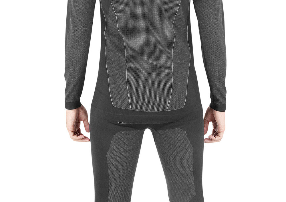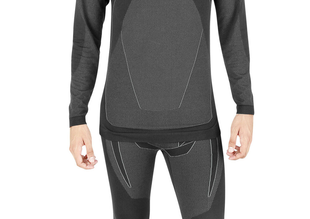 Quest’ultimo rappresenta la novità. Si tratta di un’accoppiata maglia e pantalone realizzata utilizzando un tessuto tecnico (ottenuto da un mix di poliammide e poliestere), con una costruzione che alterna zone con maggiore e minore densità di filato, allo scopo di garantire maggior protezione termica e la migliore traspirabilità dei capi.