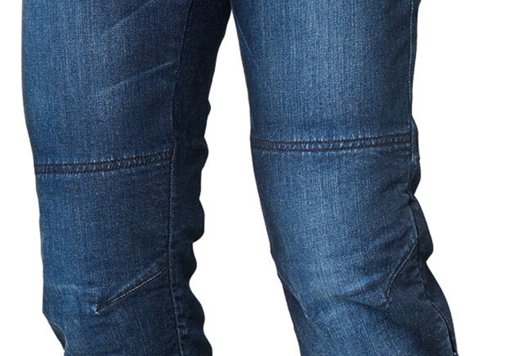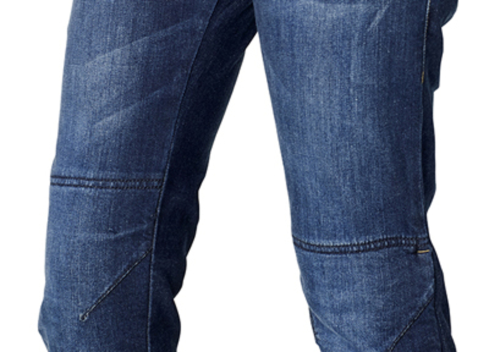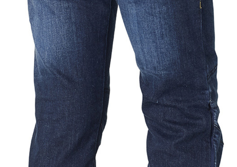 Salta subito agli occhi l'effetto invecchiato del cotone, e poi il taglio, che rappresenta il giusto compromesso tra le esigenze di comfort di chi sta in sella molte ore e chi vuole un pantalone di tendenza.