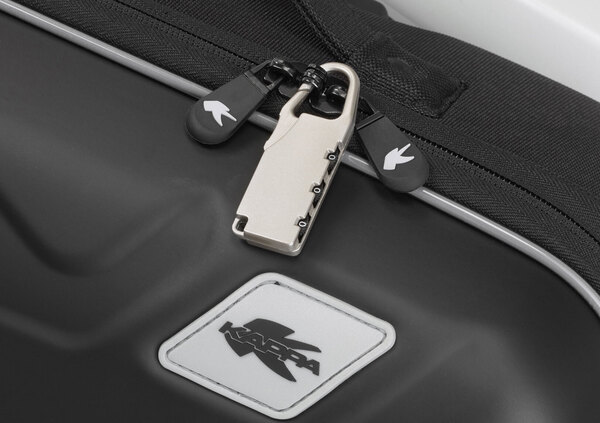 La RA314 è dotata del sistema di fissaggio EasyLock. Le procedure sono veloci e si effettuano tramite comando a chiave: basta agganciare la borsa ai telaietti metallici (specifici per ogni moto e acquistabili separatamente) fissati al telaio del veicolo.