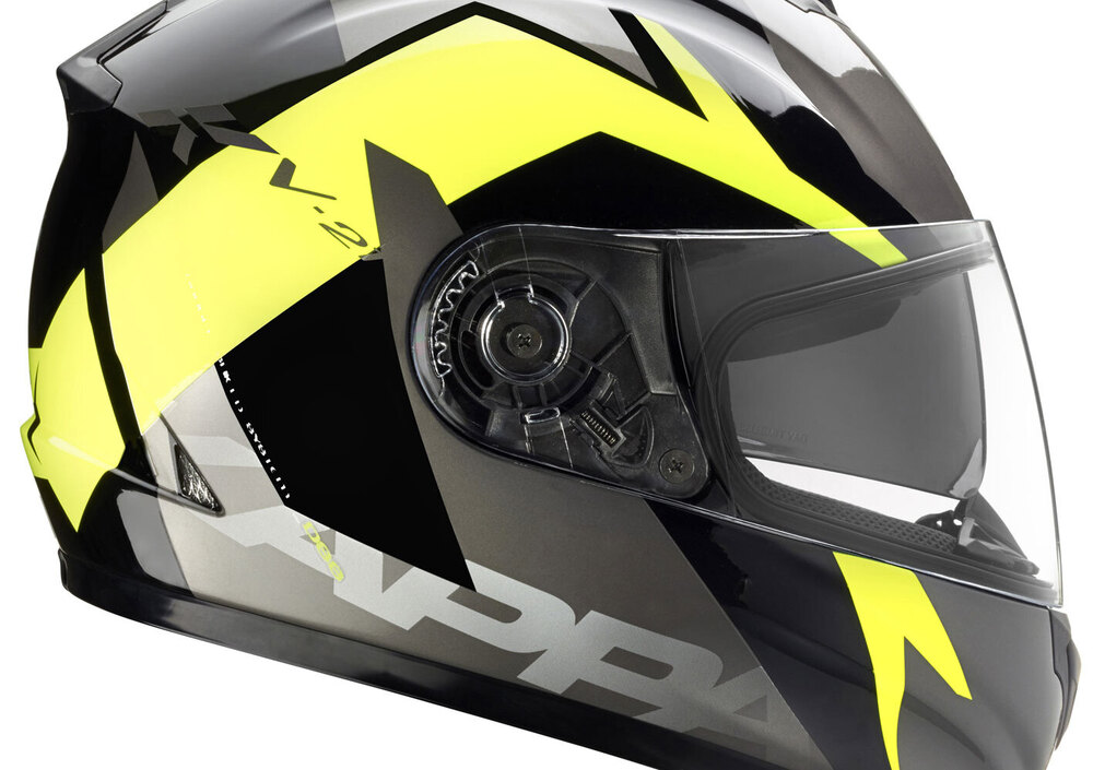 Integrale dalla calotta filante, proposto con doppia visiera, paranaso e paravento di serie. Gli interni sono anallergici e completamente removibili, il sistema di aerazione lavora con due prese d’aria anteriori regolabili e ben 4 estrattori posteriori.