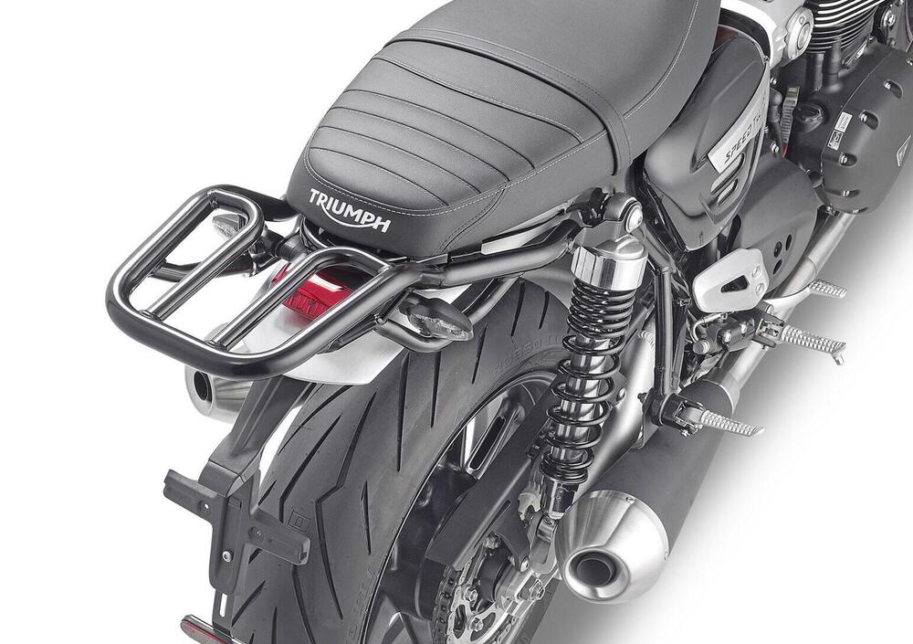 Si inizia con attacco posteriore KR6417 (prezzo al pubblico 135,50 euro), prodotto in tubolare con finitura nero lucido e utilizzabile come portapacchi oppure come supporto per piastra MONOKEY K636, nel caso servisse un appoggio maggiore, compatibile con un eventuale top case.