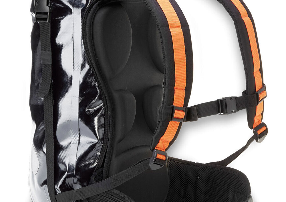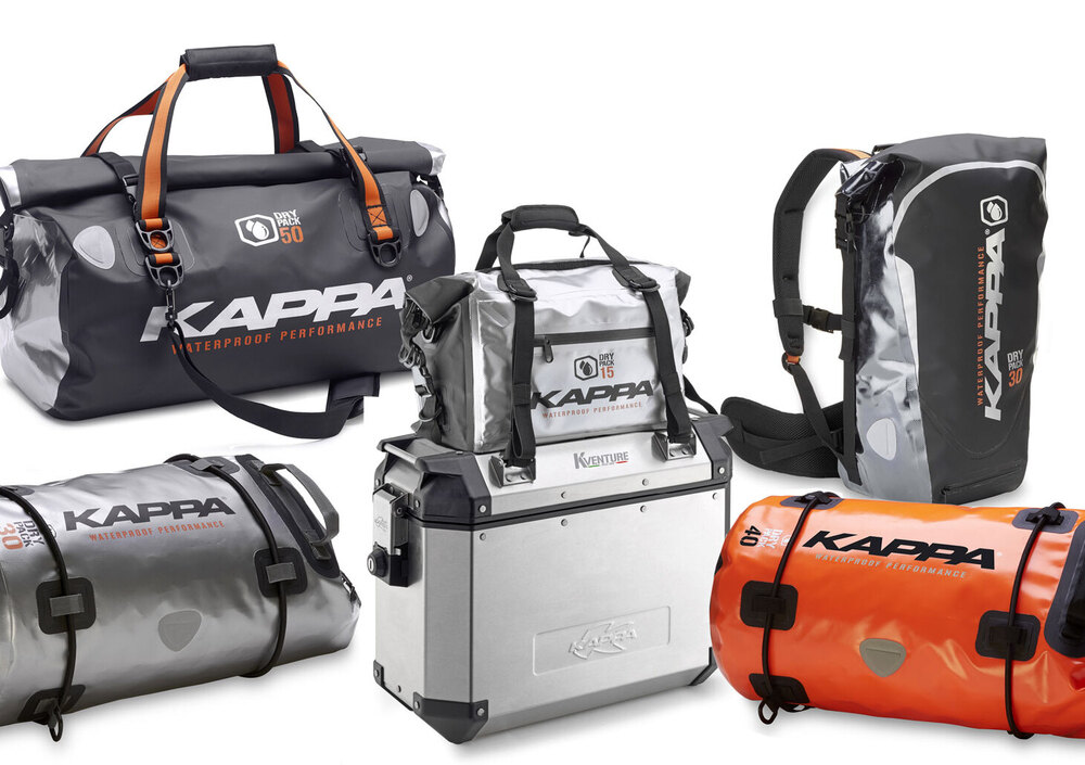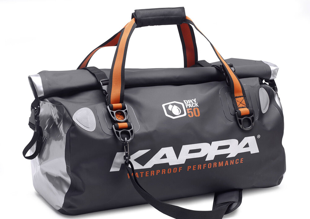 La DRY PACK di Kappa, una linea di contenitori universalmente utilizzabili (nati per le due ruote ma utili in ogni attività outdoor), riconoscibili grazie a colorazioni di impatto e al materiale utilizzo: il Tarpaulin, un PVC particolarmente robusto e reso idrorepellente al 100% grazie alla tecnologia Seamless, il sistema di saldature ad alta frequenza adottato per le cuciture. A rendere stagne le proposte di KAPPA concorre il sistema di chiusura “roll top” (ad avvolgimento), che ne modifica le dimensioni in funzione dello spazio occupato dal contenuto, raggiungendo una compattezza difficilmente riscontrabile su altre tipologie di borse morbide. Questo plus rende le DRY PACK facilmente ripiegabili anche da vuote per rubare poco spazio nel sottosella. Tutti i materiali utilizzati per realizzarle rientrano nella normativa Reach.