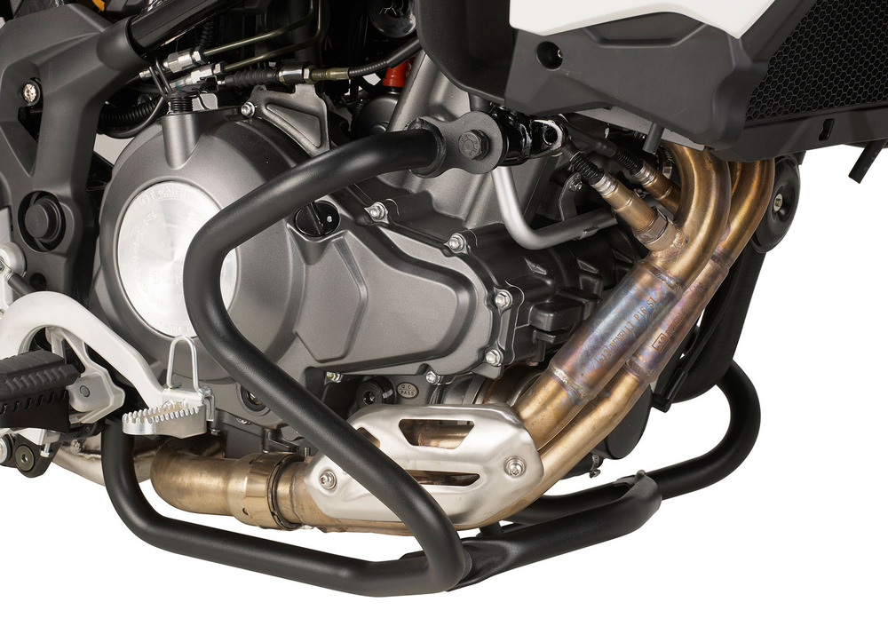 Utilizza un tubolare da 25 mm in colore nero. La protezione motore offerta da Kappa si sviluppa su due step. Questo specifico accessorio “abbraccia” esclusivamente la parte del basamento. Prezzo: 131,00 euro.