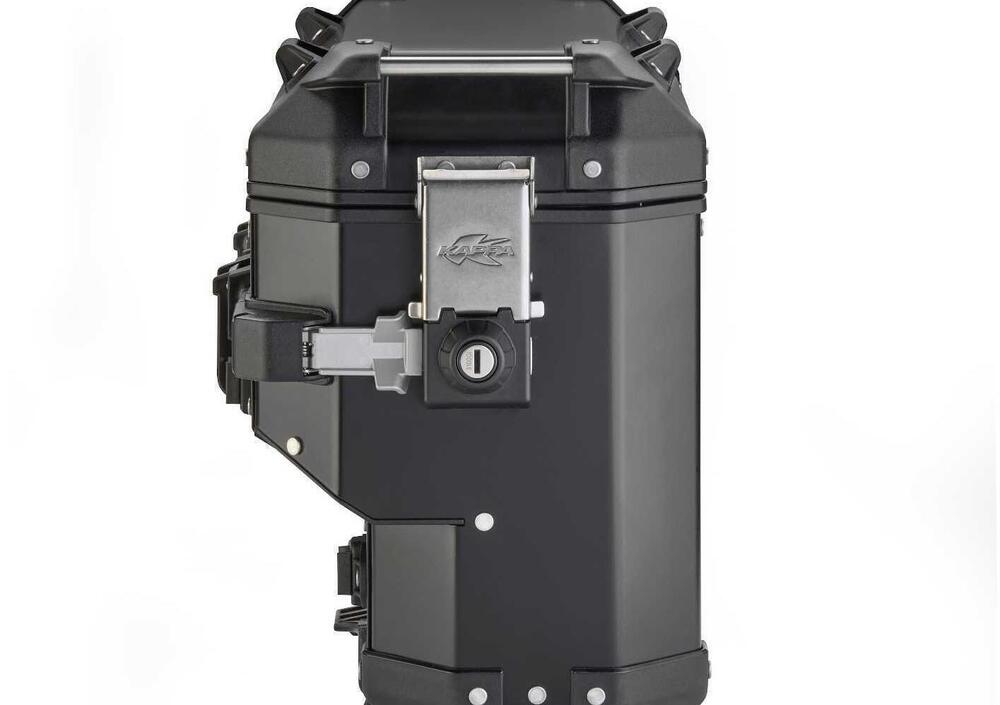 New entry in casa KAPPA, questa compatta valigia laterale destra presenta uno svaso che lascia spazio allo scarico della moto, ottimizzando così l’ingombro laterale e rispettando le proporzioni tra lato destro e sinistro.