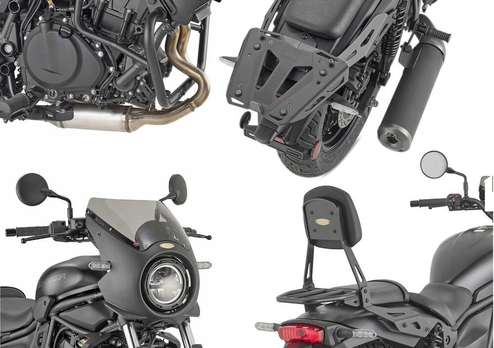 SR4134 - l’attacco posteriore specifico per bauletto MONOKEY o MONOLOCK (prezzo al pubblico: 108,99 euro). Se la valigia è MONOKEY occorre aggiungere una delle seguenti piastre: M5 o M7 (in materiale plastico), M8A, M8B (in alluminio 3 mm anodizzato), M9A, M9B (in alluminio 3 mm satinato). Se optate per un topcase MONOLOCK, la scelta della piastra comprende quella già inclusa di serie, alla quale si aggiungono i modelli M5M e la M6M. Se pensate di fare a meno del bauletto valutate il montaggio del portaborse in alluminio EX2M.