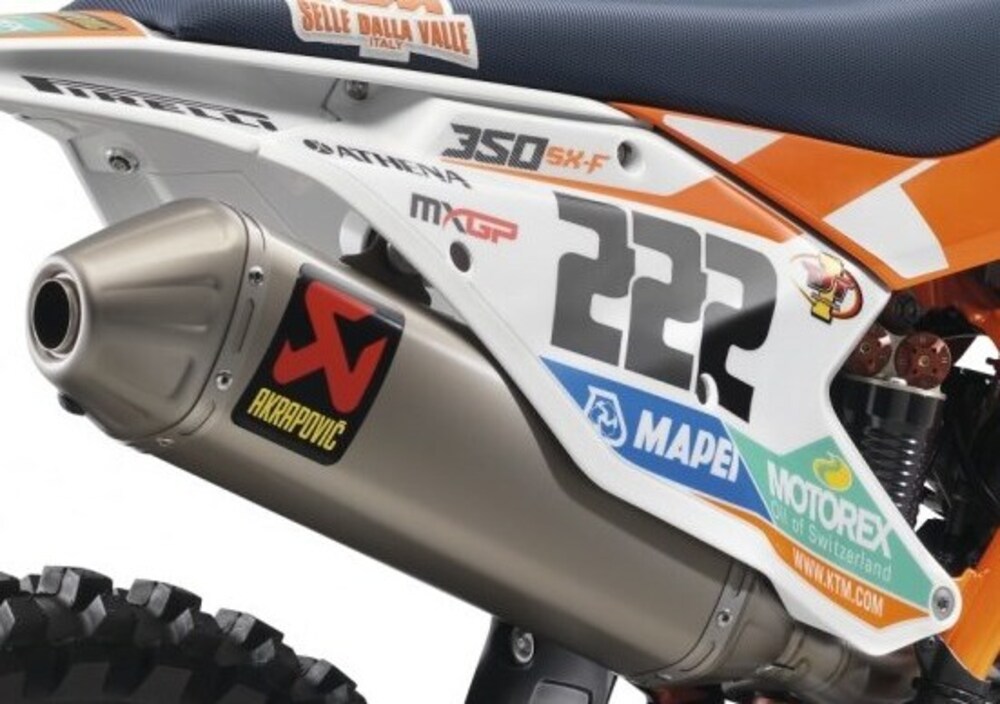 Conformi ai severi limiti di rumorosità imposti dalla FIM dal 2013, sono sviluppati appositamente per la nuova gamma SX e EXC. I silenziatori in titanio Akrapovoc garantiscono un aumento delle prestazioni, un peso inferiore e, grazie al titanio con cui sono realizzati, una qualità costruttiva eccellente. E se il rumore non è un problema, il DB killer è amovibile.