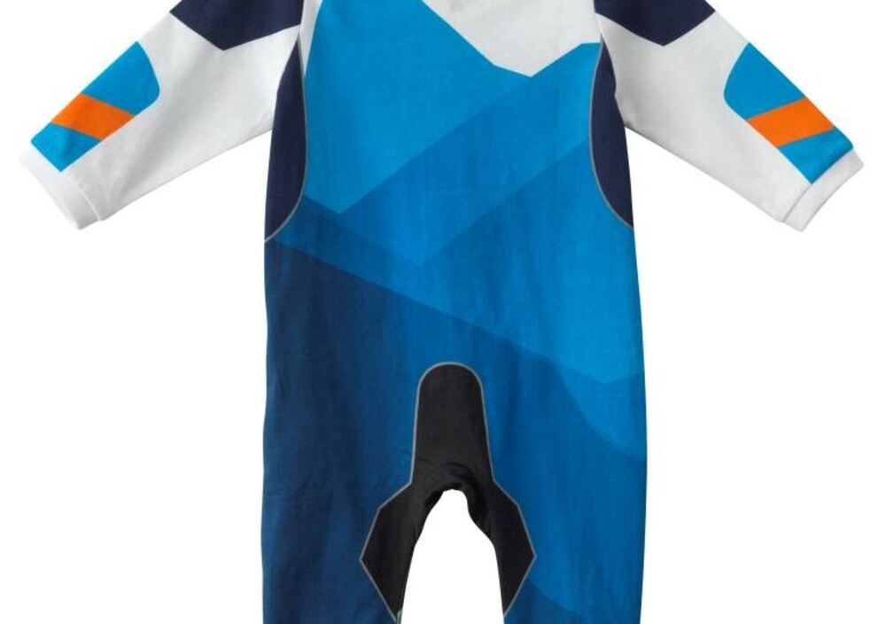 Tutina a maniche lunghe per neonato nel fantastico design Racing e bottoni automatici easy entry. 100% cotone.
