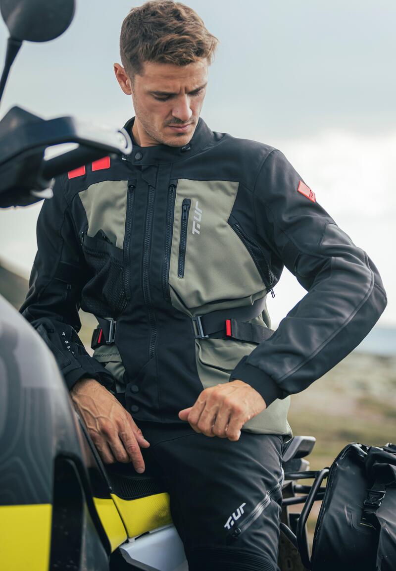 Per sentirsi un tutt’uno con la moto e la natura, è importante scegliere prodotti realizzati con materiali super performanti e curati nei minimi dettagli. Ecco perché nella linea ADVENTURE di T.ur nulla è stato lasciato caso: dalla scelta dei materiali ai sistemi di aerazione, dalla costruzione 100 per cento impermeabile e traspirante HYDROSCUD allo speciale trattamento idrorepellente DROP SAFE, fino alle protezioni ultra leggere, flessibili e ventilate EASYFLEX di livello 2 in dotazione ai capi.