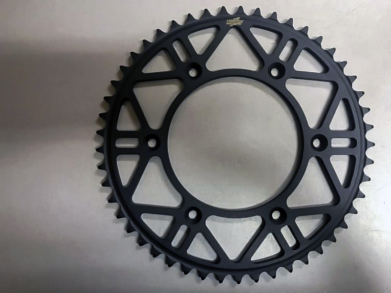 Particolare design Vertex, corona esterna realizzata in acciaio speciale 16CrNi4, denti temprati a induzione e nucleo realizzato in lega 7075 con trattamento termico T6, interamente lavorato su macchine a controllo numerico con certificazione di qualità.