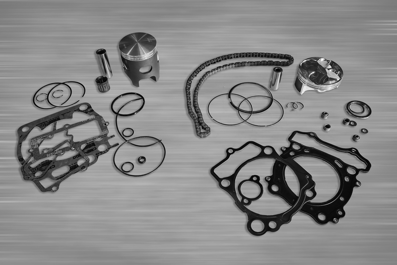 I Top-End Piston Kit contengono infatti tutto il necessario per la sostituzione del pistone, della guarnizione smeriglio, della gabbia a rulli e della catena di distribuzione. In particolare i kit per moto 2 tempi includono il pistone (Replica o Race), gli anelli di fermo, lo spinotto, i segmenti, la guarnizione smeriglio e la gabbia a rulli; mentre quelli per moto 4 tempi includono il pistone (Replica o High Compression), gli anelli di fermo, lo spinotto, il kit segmenti, la guarnizione smeriglio e la catena di distribuzione in omaggio.