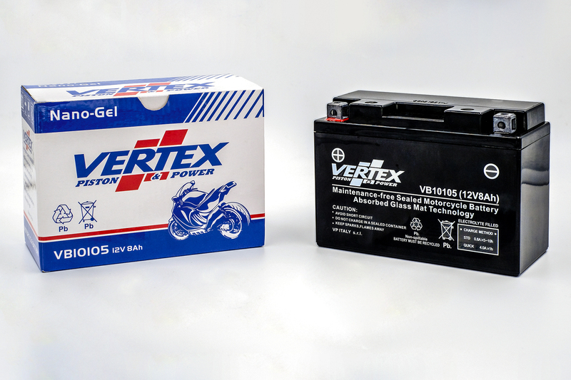 Hanno inoltre un basso rapporto di auto-scarica, una durata del ciclo vitale superiore del 15% rispetto a una batteria tradizionale, una più elevata resistenza anche alle temperature estreme (-30°C/+60°C), una migliore capacità di ricarica ed una straordinaria capacità di resistenza alle vibrazioni della moto, caratteristiche che rendono le batterie Vertex estremamente sicure ed affidabili in ogni condizione d’uso.