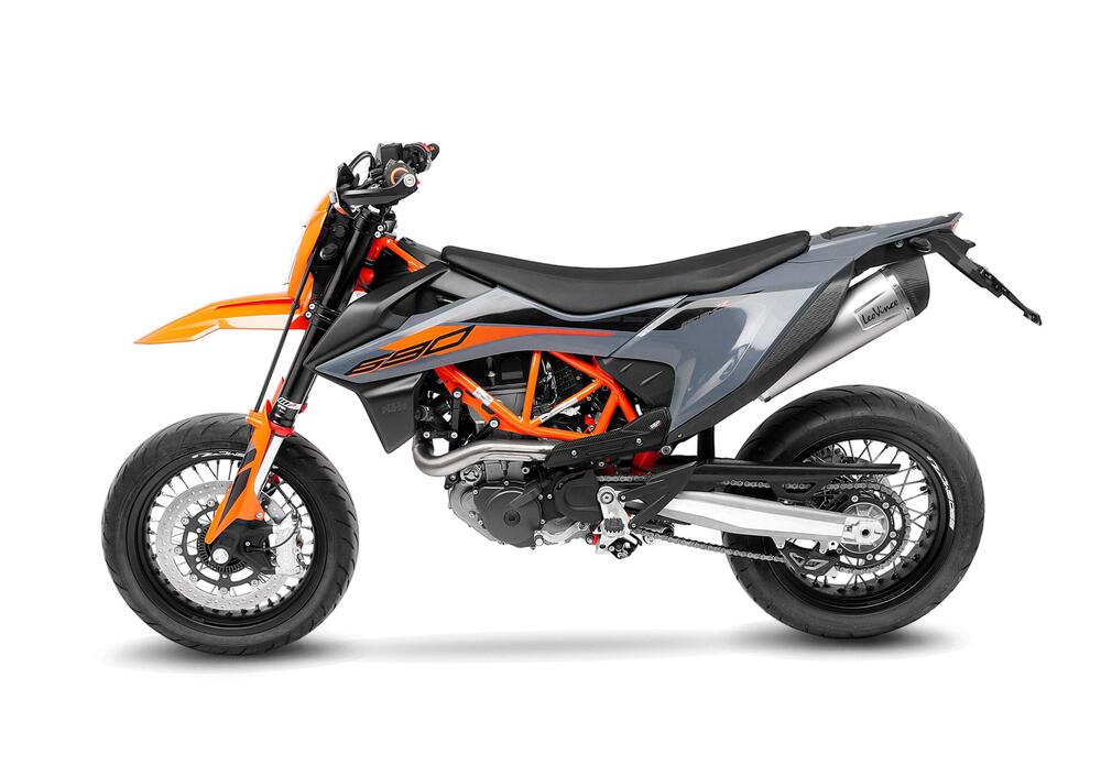 Per la KTM 690 SMC R/690 Enduro 2021 sono stati sviluppati sia lo slip-on sia il sistema completo; quest’ultimo dispone di un collettore primario dotato di uno speciale compensatore che permette di garantire prestazioni di massimo livello.