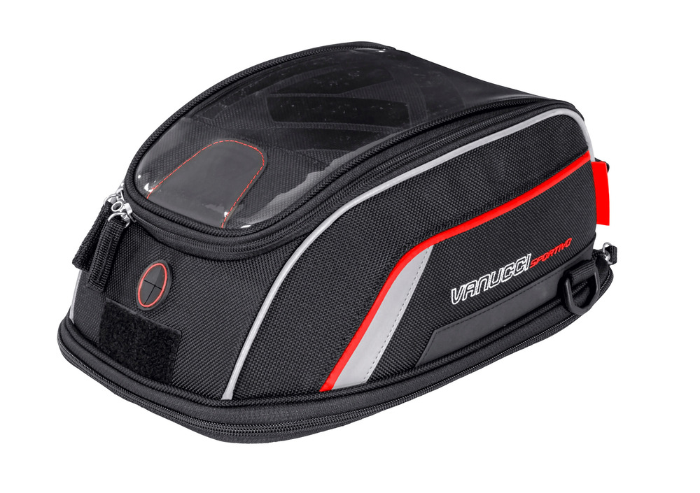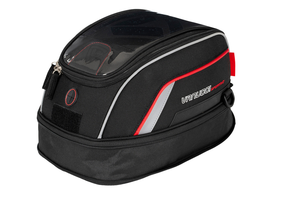 Questo zaino da serbatoio ha un volume di circa 7 litri, ampliabile fino a 9 mediante cerniera lampo. È dotato di una copertura antipioggia e di una finestra sulla parte superiore dove riporre il cellulare in modo sicuro e visibile. C'è anche un passacavo. Grazie al sistema SW-Motech Evo, si fissa con un solo clic. Un altro vantaggio: elevata stabilità anche ad alta velocità.