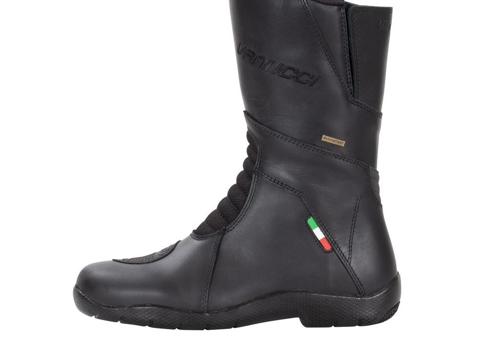 Non è facile trovare un compromesso per creare gli stivali Adventure ideali. Devono essere abbastanza robusti da affrontare in fuoristrada, ma anche abbastanza flessibili da garantire un comfort eccellente durante le lunghe passeggiate in moto e alcune escursioni a piedi. I Vanucci VTB 9 rispondono a queste esigenze, grazie all'utilizzo della pelle nabuk oliata idrofobica. La membrana SympaTex garantisce impermeabilità e traspirabilità.