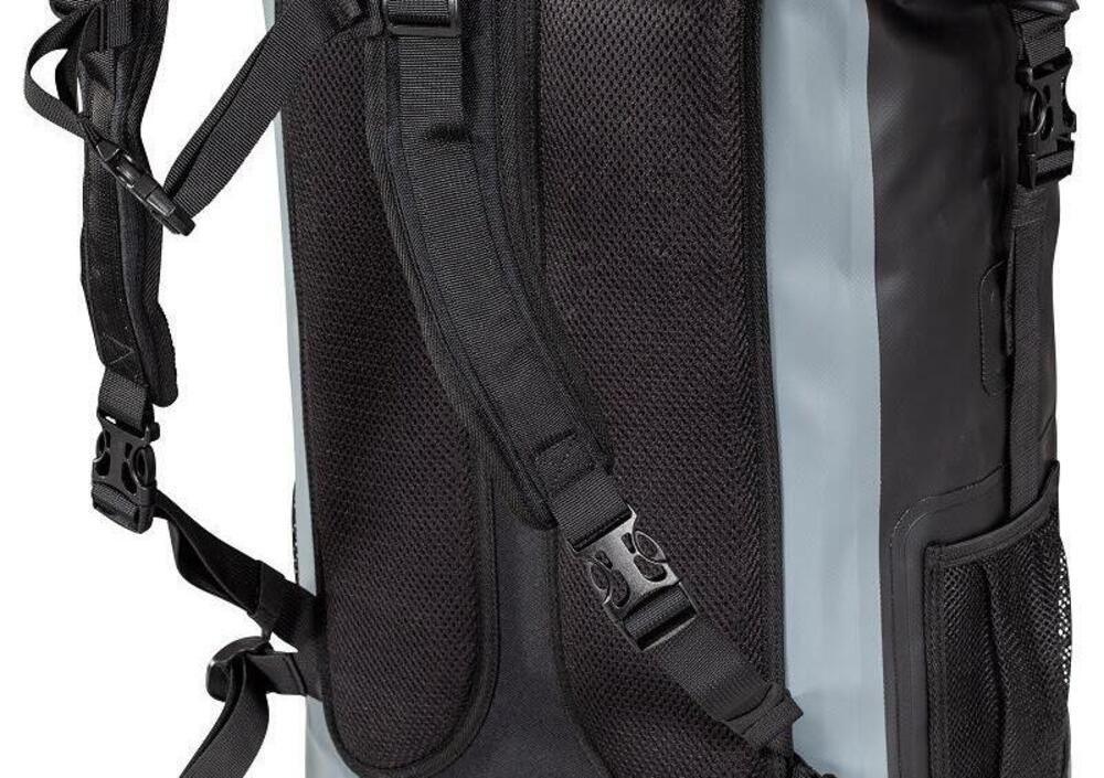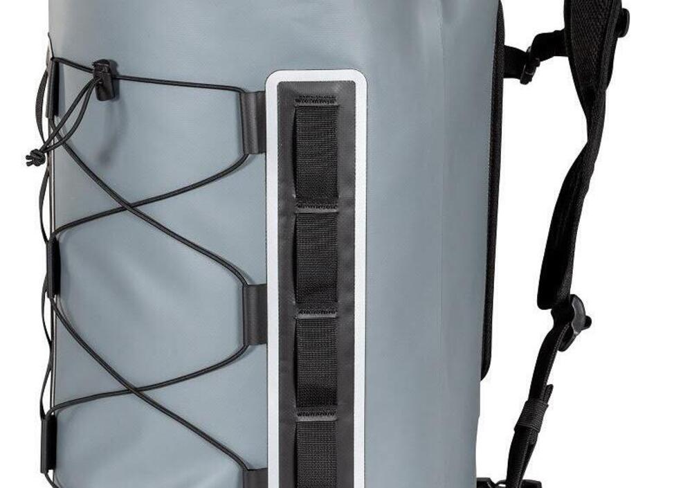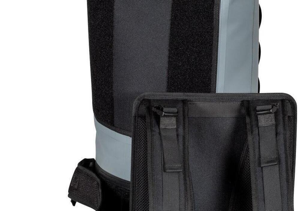 Finitura robusta e design sobrio, qui sono gli aspetti pragmatici a prevalere. Perché questo sistema deve affrontare le condizioni climatiche più difficili e deve essere adattabile a tutti gli usi. Le chiusure arrotolate, in particolare, assicurano che nessuna goccia possa penetrare all'interno del bagaglio.