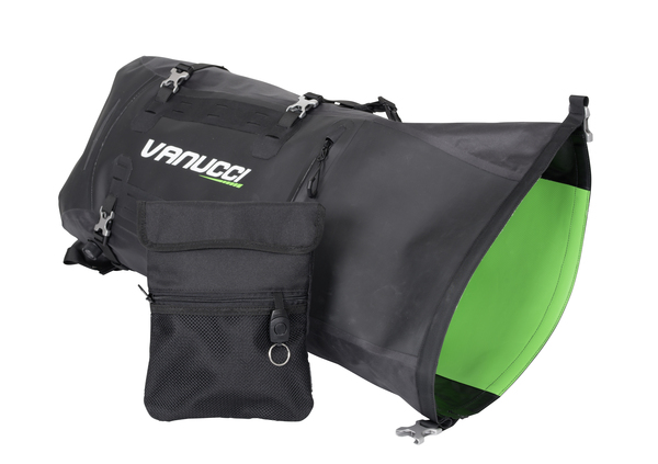 Con un volume di stoccaggio di 25 litri, questo zaino è completamente impermeabile, grazie alla sua chiusura arrotolata con fibbie a clip.