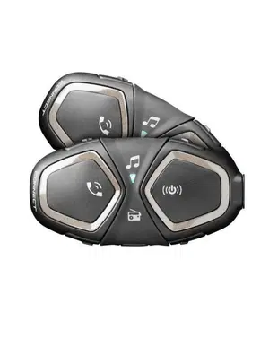 Tutta la tecnologia di Connect, moltiplicata per due! La coppia di interfoni consente di parlare con il passeggero grazie alla portata di 10 metri. Con gli interfoni Connect condividi la musica con il passeggero, per un viaggio veramente partecipato ed emozionante. Puoi collegarlo facilmente via Bluetooth® al cellulare, grazie all’App per Android e iOS, così puoi seguire anche le istruzioni vocali del navigatore GPS. La batteria ha una durata notevole: ben 15 ore in conversazione. Emozionarsi insieme con questi interfoni è un gioco da ragazzi!
