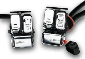 Codice prodotto: AW008723.96-06 Sportster, 96-06 Dyna, 96-06 Softail, 96-03 FLHR, 96-97, 00-02, 04-06 FLHRI, 96-00, 02-03 FLHT, 98-06 FLHRCI, 02 FLHRSEI, 03-04, 06 FLHTI, 04-06 FLHRSI, esclusi i modelli con radio Interruttori ergonomici per alloggiamenti comandi manubrio Custom Chrome o per moto dal 1996-2012 con comandi di serie tipo nuovo. Gli interruttori sagomati forniscono una piu' facile operativite' migliorandone il riconoscimento al tatto, anche con guanti indossati. I pulsanti sono resistenti all'acqua,per miglior affidabilite' in condizioni climatiche avverse. Il cablaggio lungo 48" circa 122cm rispetta il colore di quelli originali ed i pulsanti sono gia' fissati per semplificarne l'installazione. CROMATO CON LETTERE NERE I kit includono terminali cavo,viti di montaggio e istruzioni.<br/>