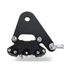 Pinza e staffa posteriore Custom a 4 Pistoni. La staffa è universale e si monta inferiormente, include asta ancoraggio. è anche la migliore per il lato destro della moto custom. Per tutti i modelli per ruote con disco posteriore a destra.