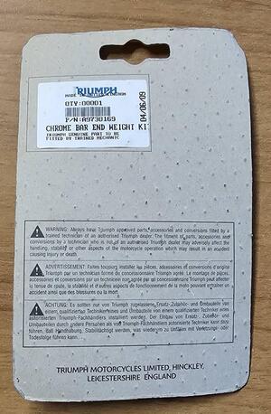 | Oggetto | CONTRAPPESI originali Triumph Thunderbird Storm 16 |