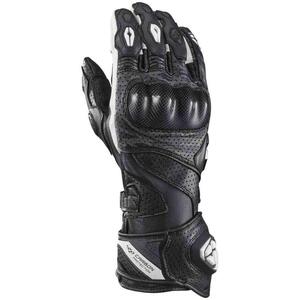 Guanto racing ad alte prestazioni con struttura ventilata in pelle traforata, rinforzi in pelle di capra e protezioni in carbonio. Certificato CE.<br/>
