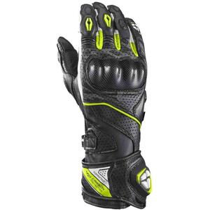 Guanto racing ad alte prestazioni con struttura ventilata in pelle traforata, rinforzi in pelle di capra e protezioni in carbonio. Certificato CE.<br/>