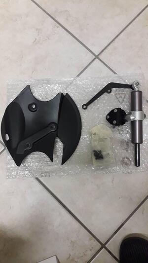 Vendesi ammortizzatore sterzo originale Ducati ( compreso parapolvere specifico e 3 viti) adatto a Ducati 1200 Enduro, tutte 1200 dvt e forse anche a 1260 ( verificare presenza asola attacco su telaio sopra piastra inferiore forcella). Pari al nuovo acquistato nuovo un anno fa e smontato oggi per venfita moto costo oltre 500 euro prezzo pieno ..pagato 487 euro (migliora sensibilmentre noto problema ondeggiamento ad alta velocita e tempo montaggio 20 minuti). Cedo a 260 euro comprese spese spedizione Poste. Pagamento solo tramite bonifico bancario o contanti a mano a 250 euro.