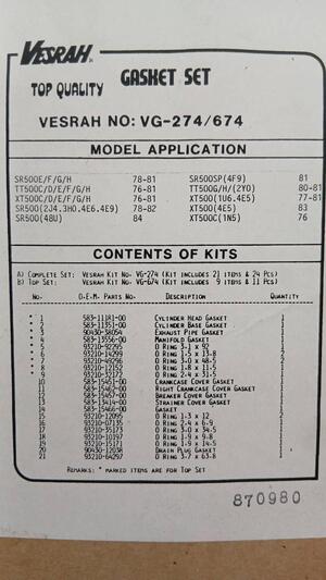| Oggetto | 701115/8 KIT GUARNIZIONI YAMAHA |