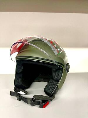 casco jet leggero con visiera lunga , possibilità di installare interfono. colore verde militare , disponibile in tutte le taglie.