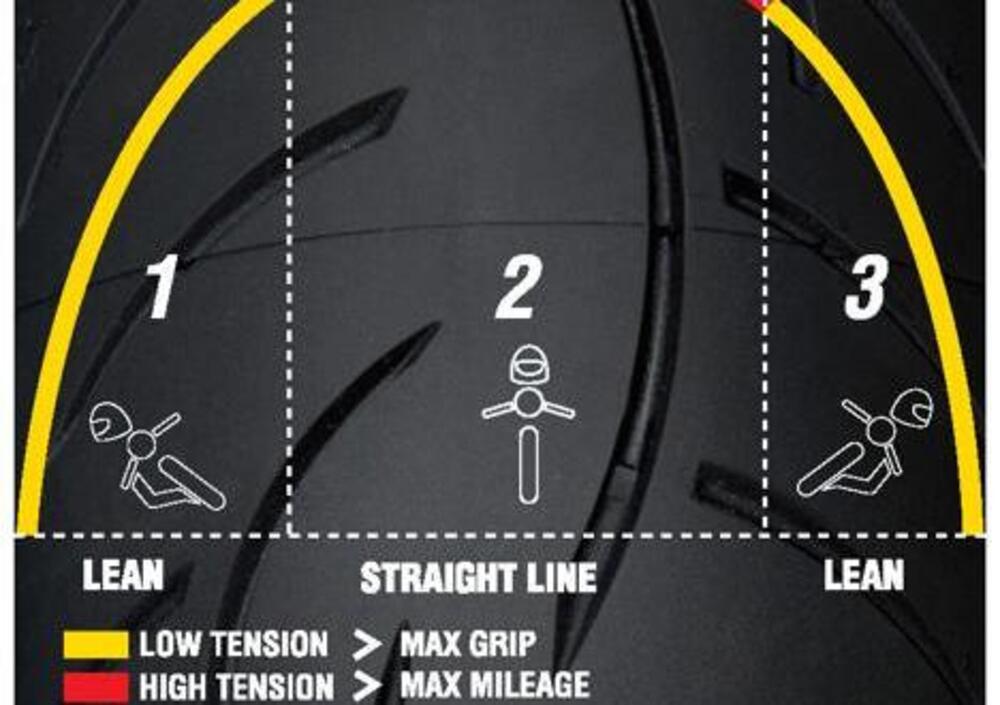 Le logiche di funzionamento di un pneumatico votato all’uso in pista, come il Racetec K3, sono decisamente lontane da quelle di un macina chilometri quale il Roadtec Z8… ma meno di quanto immaginiate. Le spire metalliche nel K3 hanno una tensione differenziata tra il centro del battistrada, dove sono certamente meno “tese” rispetto allo Z8 (pensato per moto di stazza imponente e macinatrici di chilometri) che deve essere ben rigido, mentre nella fascia mediana del battistrada, il pneumatico pistaiolo deve fornire la maggior area di contatto con l’asfalto (ecco che cala la tensione dei cavetti ed aumenta la capacità di copiare la superficie d’appoggio), mentre lo stradale deve contenere la spinta dei kg (maggior tensione…). In parole povere, ogni tipologia di pneumatico, da pista o da strada che sia, viene perfezionato, oltre che dal punto di vista del profilo/disegno battistrada e della relativa mescola, anche attraverso questo tensionamento delle spire.