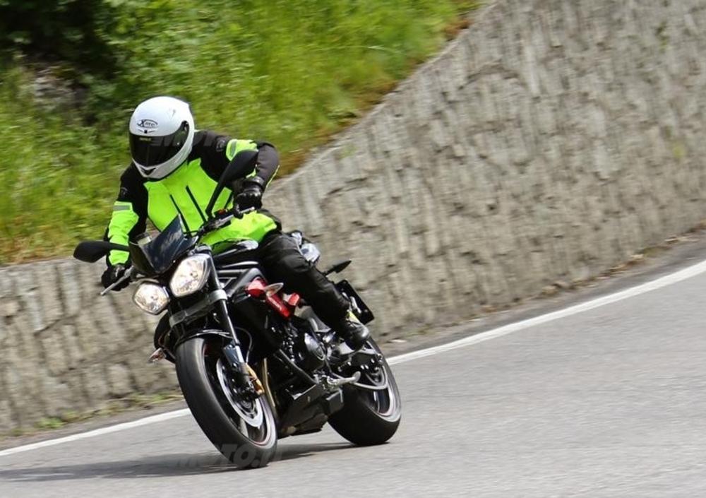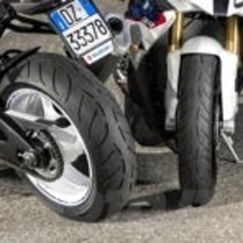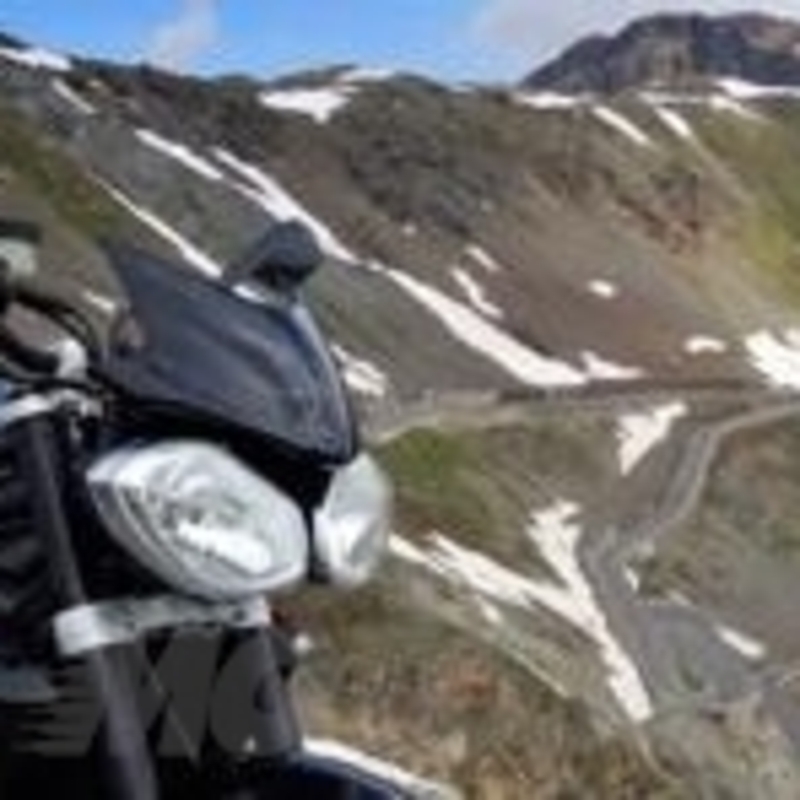 Ora finalmente ci aspettano i tornanti del famoso Passo dello Stelvio, sole, cielo sereno e asfalto caldo sono le condizioni ideali che tutti i motociclisti desiderano avere e ne approfittiamo per iniziare a sfruttare al meglio lo pneumatico, spingendo sin dalle prime curve. Affrontiamo i primi tornanti e le prime curve ampie, con cambi di direzione e discese in piega veloci, senza avere mai la sensazione che la moto stia per cadere e dover così raddrizzare e correggere la traiettoria. Queste Sportec abbinate alla nostra Triumph Street Triple R sono un’accoppiata vincente. Controllo e stabilità non vengono mai a mancare anche quando si devono affrontare curve a moto inclinata ancora con la mano sul freno. Arrivati in cima al Passo dello Stelvio le nostre gomme non presentano nessuna imperfezione esteriore e rimaniamo visibilmente stupiti da come abbiano lavorato bene e omogeneamente. Una gomma quindi, a nostro giudizio, adatta sia per un uso turistico ma che si comporta bene anche per un uso sportivo e che non disdegna qualche uscita in pista.