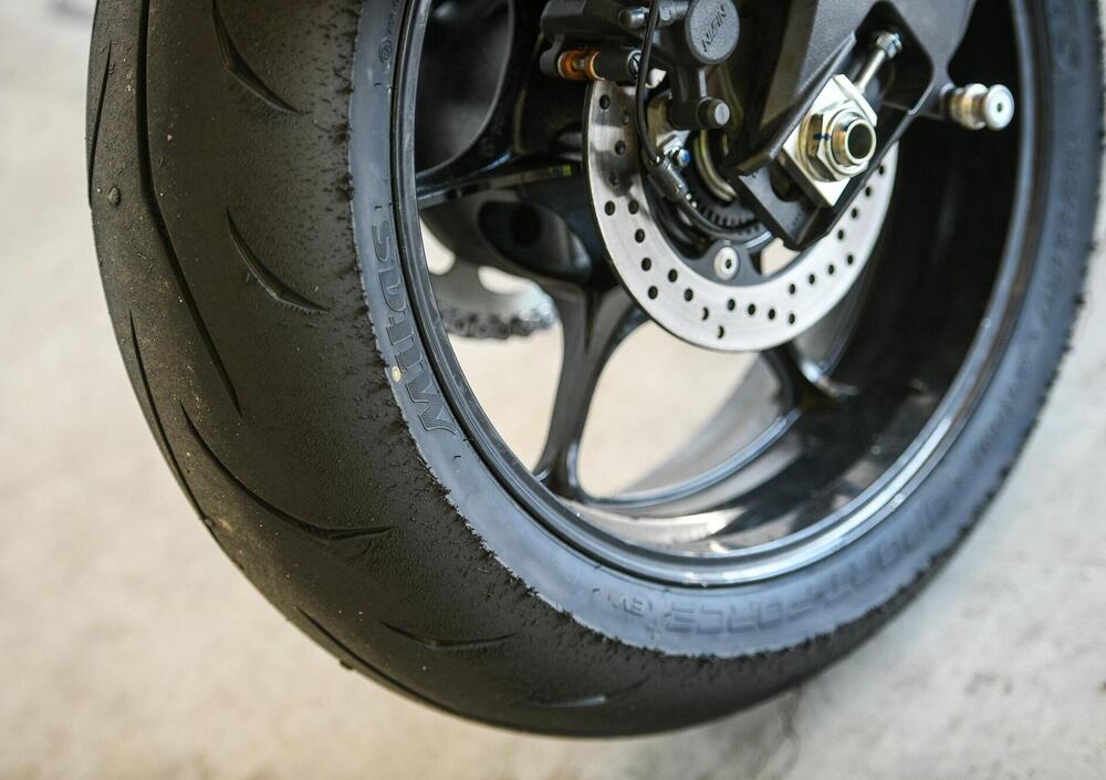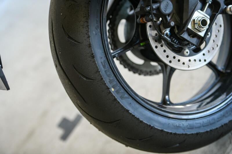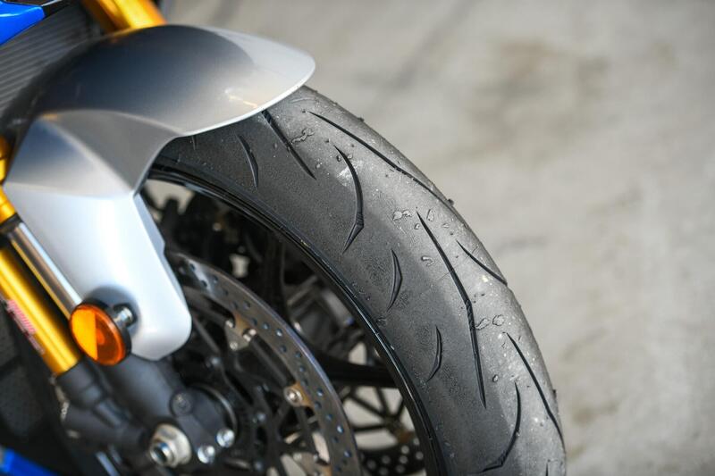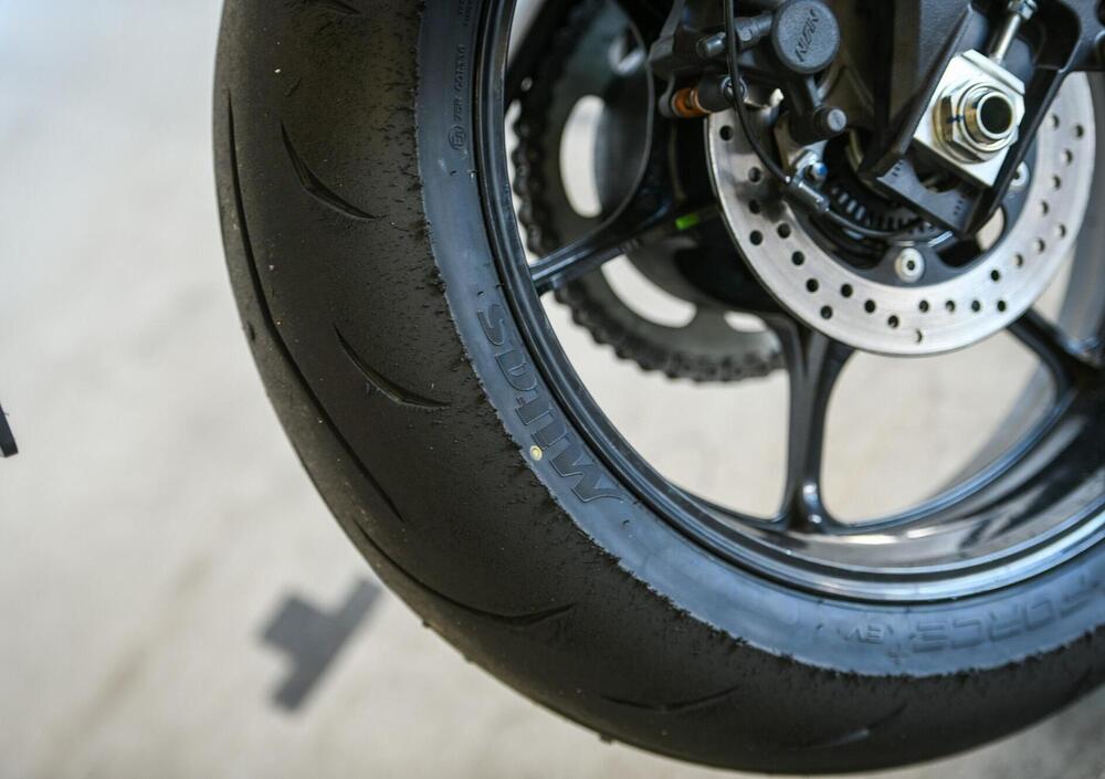 Le prime impressioni sono state positive, una modesta perdita di rapidità nello scendere in piega, rispetto al primo equipaggiamento (Bridgestone Battlax S22), ma una bella dose di grip in percorrenza e uscita di curva.