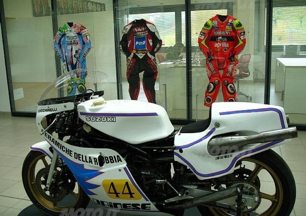 classe 250 con indosso una tuta Dainese, contemporaneamente esordiva