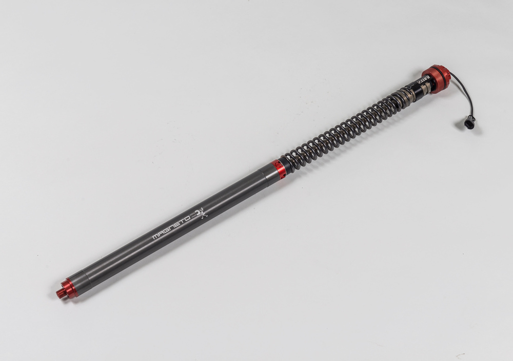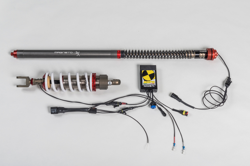 In una prima versione, tuttora in commercio per applicazioni specialistiche ma naturalmente più costosa e complessa, Magneto è dotato di sensori di escursione su forcella ed ammortizzatore a coadiuvare il lavoro della centralina. Nella versione che abbiamo provato, invece, il sistema ne fa a meno per contenere i costi ma anche facilitare il montaggio su più modelli di moto, che potrebbero non disporre dello spazio necessario ad ospitare i sensori. Si tratta comunque di unità con componenti meccaniche estremamente raffinate, perché per resistere all’azione abrasiva delle particelle metalliche contenute nell’olio è evidentemente necessario utilizzare materiali e lavorazioni che garantiscano una resistenza molto superiore alla media per poter offrire intervalli di manutenzione (stimati in circa 25.000 km) pari a quelle di una sospensione tradizionale.