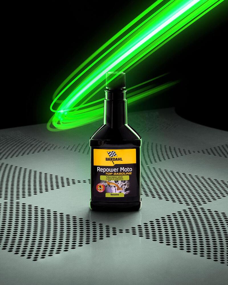 Bardahl Top Gasoline Repower Moto, oltre a favorire l’eliminazione dell’acqua di condensa dal serbatoio (fenomeno destinato ad accentuarsi nei periodi di sosta per il rimessaggio invernale), ha un efficace potere detergente per un rapido ripristino delle prestazioni del motore, con incrementi che possono andare da un 3% fino anche un 7% di potenza nel punto di coppia. L’uso di questo additivo Bardahl garantisce anche la pulizia completa delle valvole, iniettori, camera di combustione, ripristinando le prestazioni del propulsore e riducendo i consumi e le emissioni inquinanti.