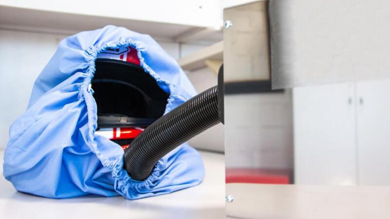 Caschi e abbigliamento esposti saranno inoltre igienizzati con regolarità singolarmente mediante speciali prodotti spray inodore e che non lasciano residui, anche prima di essere provati.